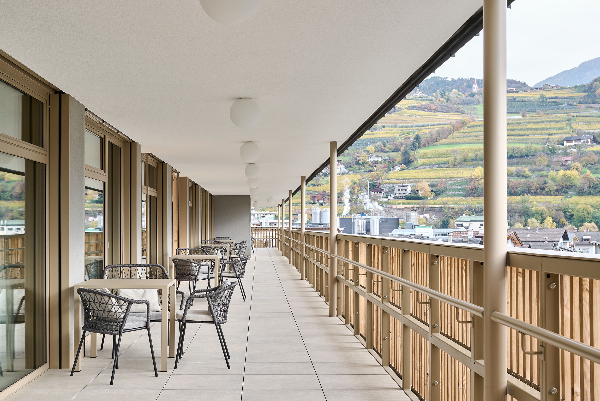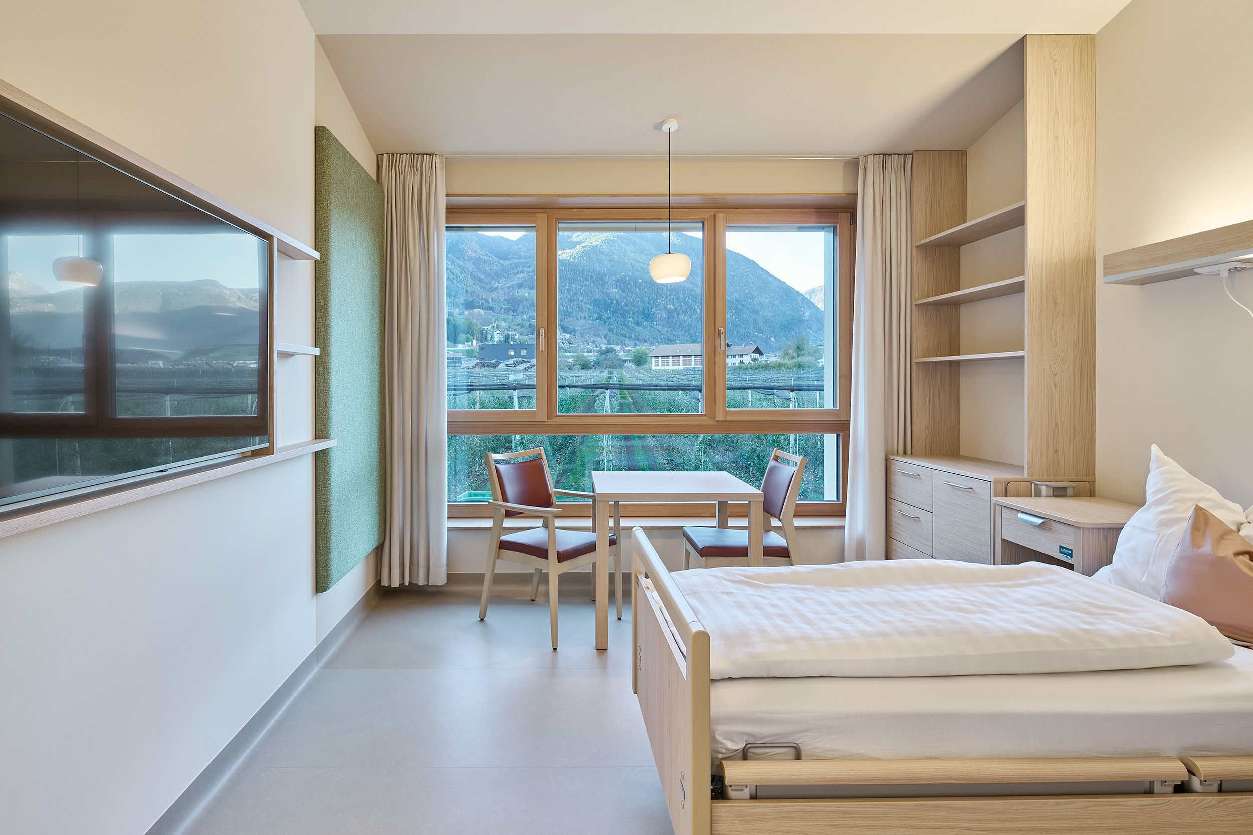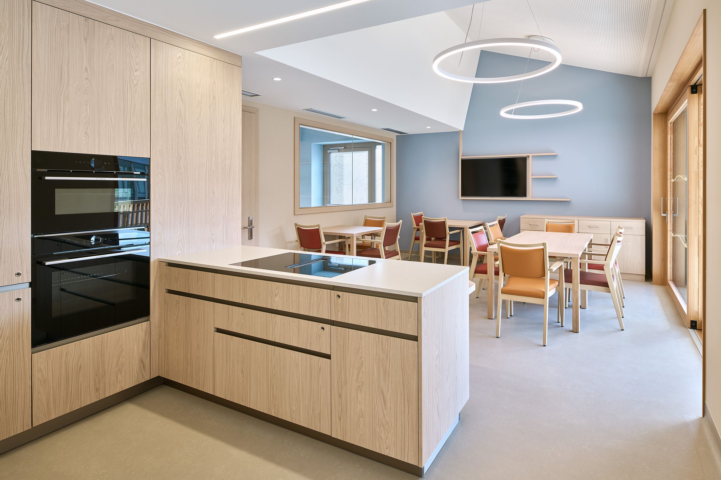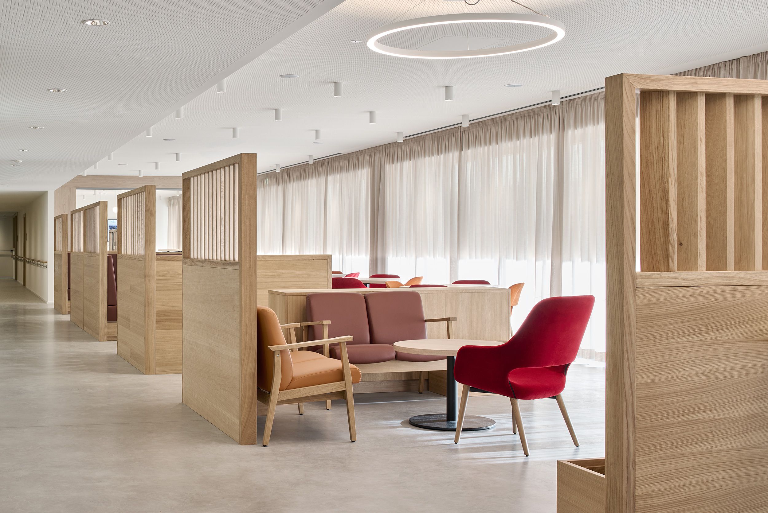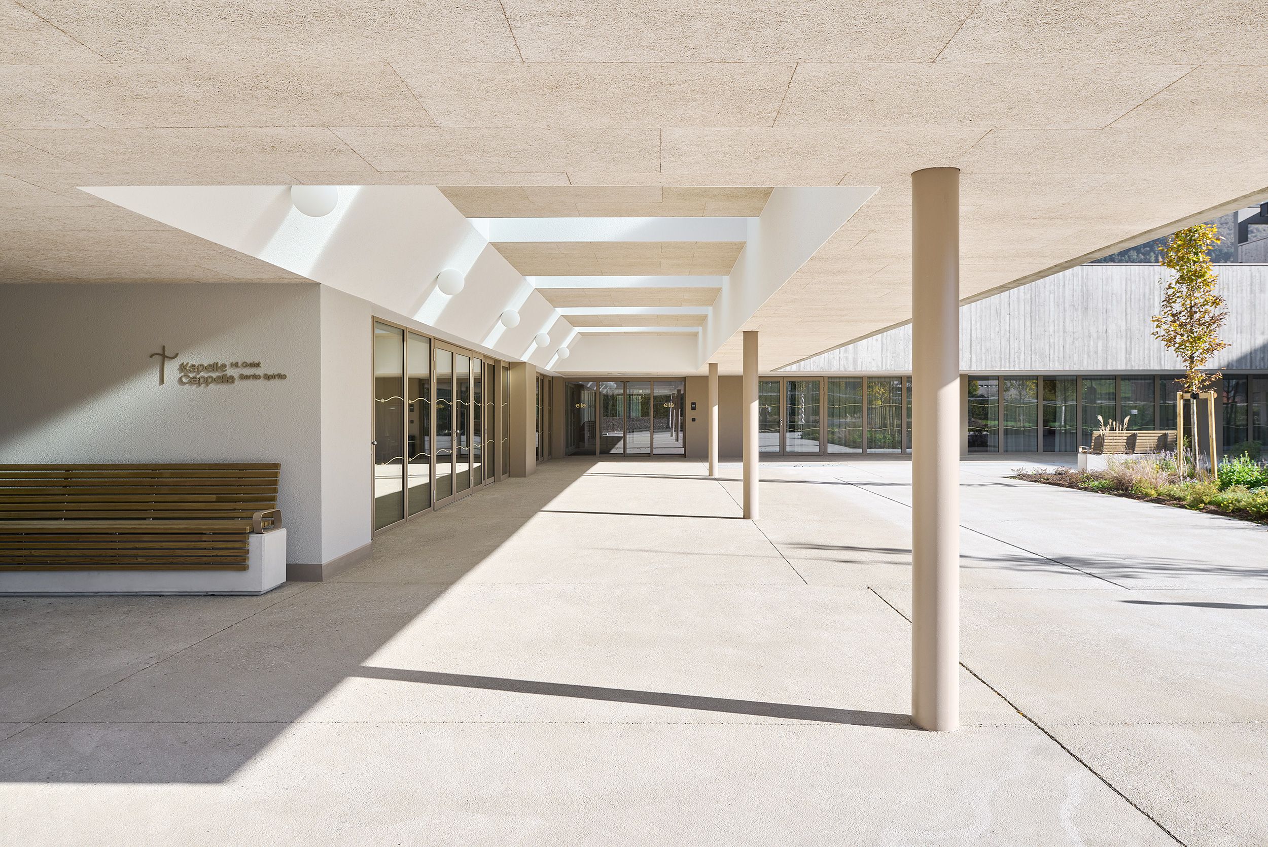 Öffentliche Bereiche wie Café, Mensa, Ambulatorien und Eingangsplatz laden dazu ein, die Einrichtung mit der Außenwelt zu verknüpfen. Sie ermöglichen den Bewohnerinnen und Bewohnern eine aktive Teilhabe am sozialen Leben und verhindern die Isolation der Struktur. Hohe Wohnqualität, eine nachhaltige und energieeffiziente Bauweise sowie fortschrittliche technische Lösungen wie Geothermie und Photovoltaik verbinden sich zu einem zukunftsweisenden Gebäudekonzept.