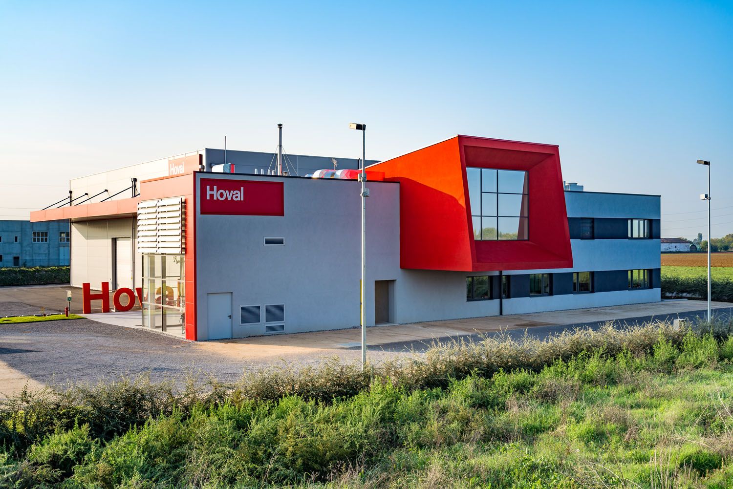 The building, a striking red cube, forms a bold and unmistakable link to the Hoval company’s logo and products. Thus, the architecture becomes a tangible representation of the company’s ideals and ethos.
