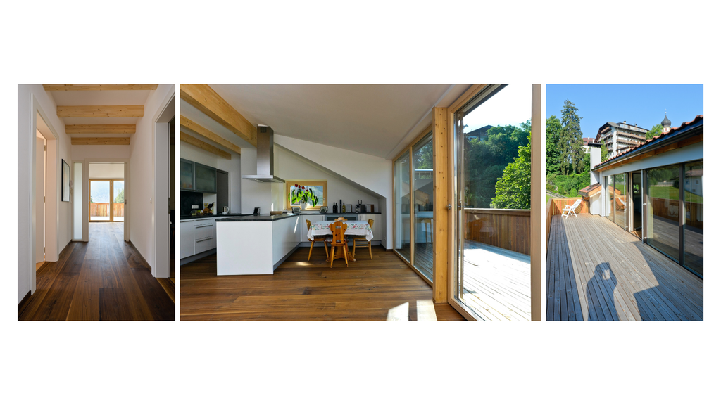 Revitalizing a 1956 Residential Building Attic: Opening up the southern living space with expansive glazing and a terrace, fostering a bright, welcoming ambiance and harnessing solar benefits. The attic underwent comprehensive internal and energy-efficient renovations, including exterior wall and roof insulation, along with window replacements.