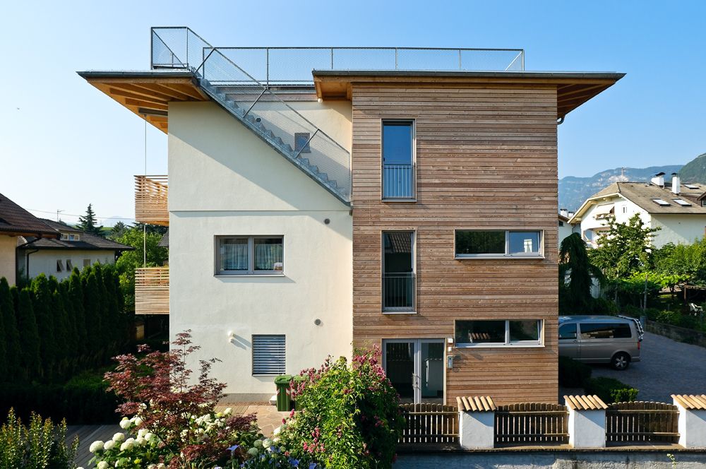 Questo edificio residenziale, costruito nel 1984 è stato oggetto di un intervento di ristrutturazione energetica e riprogettazione con l’aggiunta di un nuovo piano con un appartamento in mansarda costruito secondo gli standard della casa passiva in legno.