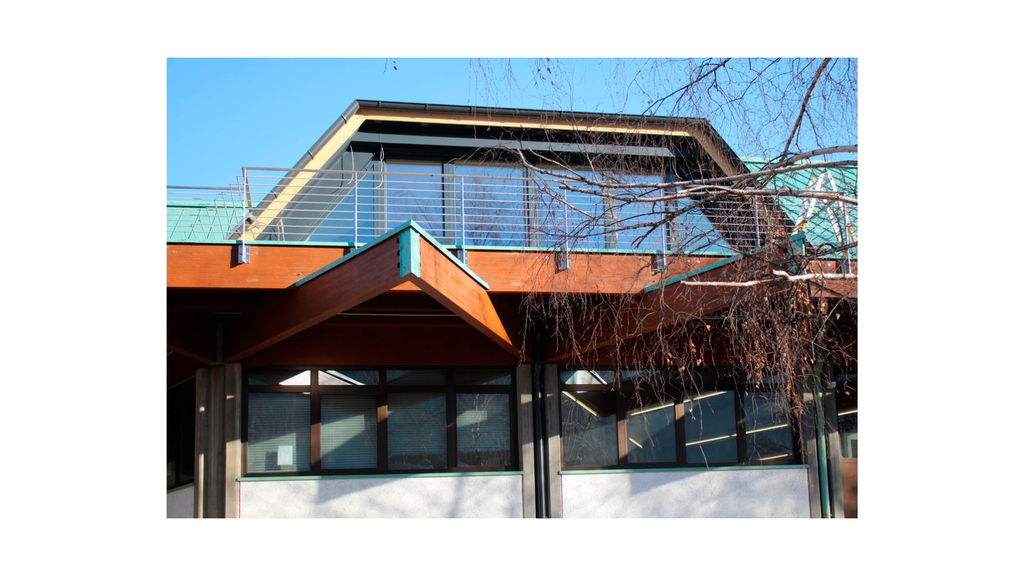 L’edificio aziendale del 1989, noto per il suo design particolare, è stato oggetto di una ristrutturazione energetica un radicale cambiamento della forma del tetto. La struttura interna a forma di rombo è stata mantenuta, ma sono stati aggiunti generosi abbaini per aumentare l’apporto di luce naturale e terrazze sul tetto. Nella ristrutturazione è stata sostituita la struttura del tetto e delle finestre con un involucro isolato di alta qualità e l’installazione di finestre a triplo vetro. Inoltre, sono state previste le predisposizioni per l’installazione futura di un impianto fotovoltaico sul lato sud-ovest del tetto.